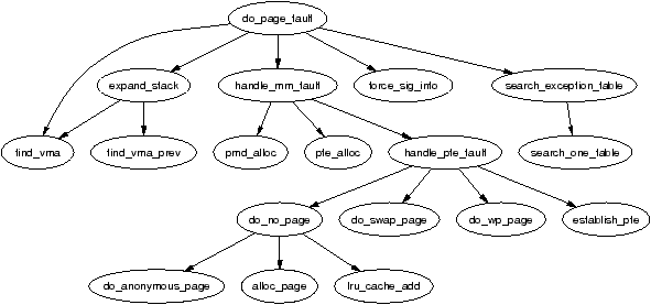 각 아키텍처는 페이지 폴트를 처리하기위한 아키텍처 의존적인 함수를 등록한다. 이 함수의 이름은 임의로 지어지지만, 보통은 do_page_fault()이며, x86의 call grap를 Figure 4.12에서 볼 수 있다.